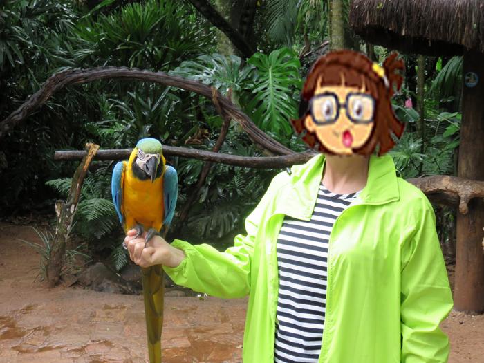 据说鸟园内半数以上品种都濒临绝种威胁。我们看到了许多以前没看见过的鸟。特别是大嘴鸟,那鲜艳的颜色,美得像假的一样。许多漂亮的金刚鹦鹉在一个高大的棚子里吵闹。早上听到的鸟叫声就是来自它们。不过它们也不是整天扰民,不然的话,旅馆也不会建在鸟园隔壁。