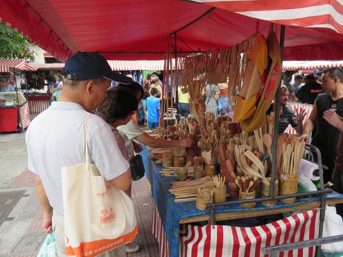 从餐馆出来,就看见街对面有好多卖东西的棚子。过去一看,原来是一个亚洲文化节。几十个摊位上摆满了各种手工艺品。食品摊位前挤满了人,走都走不过去。这时心中一阵后悔,还不如到这里来吃午饭呢,只一街之隔啊,就等不了啦。