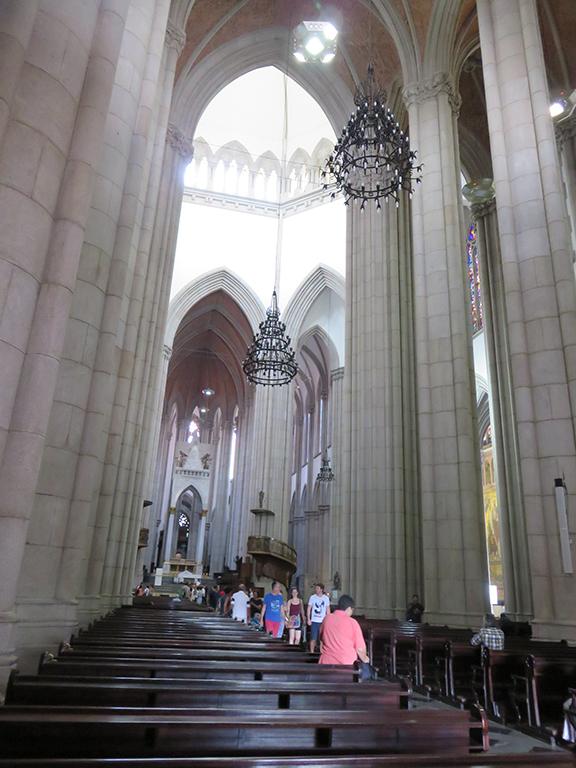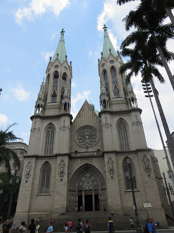 网上信息说,圣保罗大教堂是天主教圣保罗总教区的主教座堂,是圣保罗最大的教堂,长111米,宽46米,两座钟楼高达92米,使用了800多吨珍贵的大理石,可容纳8000人。