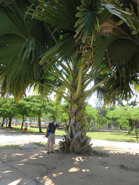 这个地方靠海边,是个公园。列宁同志又一次被粗大的棕榈树所震撼。这种棕榈树很粗,恐怕要两三个人才能合抱过来。叶子巨大,叶茎有人腰粗,一片叶子就可以当个床铺。还看见了树上的绿鹦鹉的窝和小鹦鹉。海边可看见糖面包山。远处可见基督山。