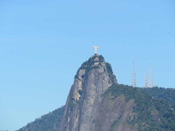 基督像高高的耸立在山顶,要仰着头才能看清全像。虽然我们来的很早,人还是很多。从高处看,全是人头。虽说专有供照相的地方,但要和基督他老人家照一个干净的合影也不容易。没办法,这可是世界著名的里约第一景啊,谁都要来啊!