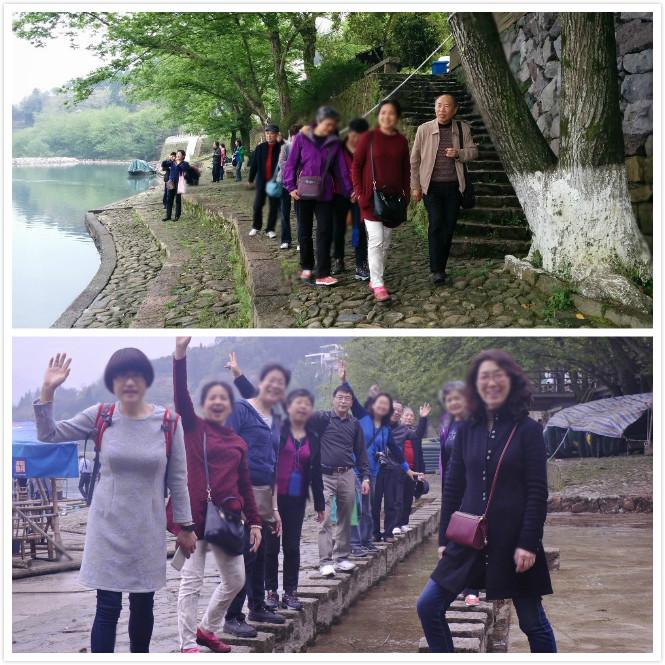 话说车子到了楠溪江。大家‘车上不睡觉,下车争拍照’。
