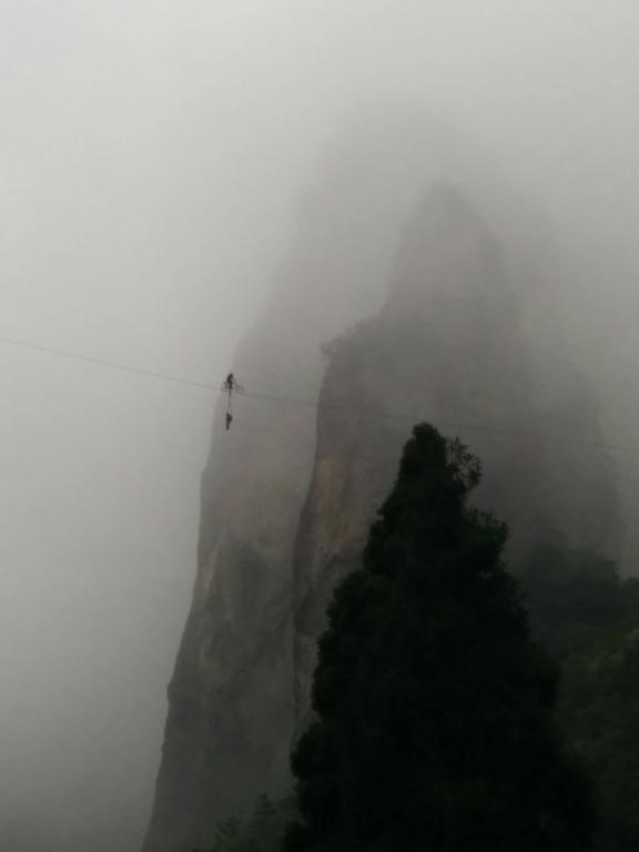 ‘灵岩飞渡’是在天柱峰和展旗峰间架钢索。