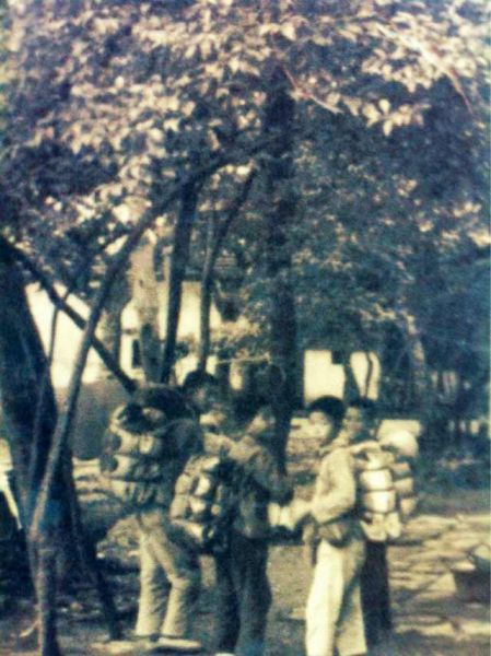 牟小哥的父亲是博物馆的,喜欢摄影。雁总发的照片里有一张旧照片。牟小哥和几个同学背着背包,像是要去拉练。