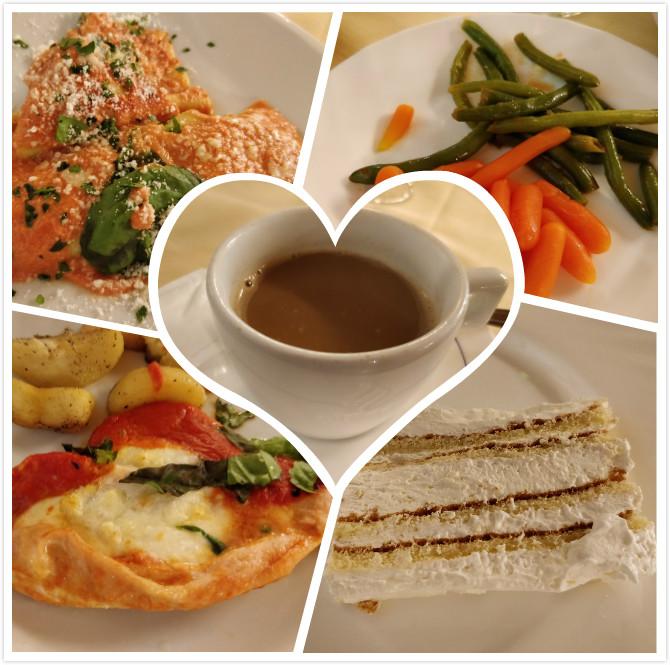 三道餐食加甜点、咖啡: