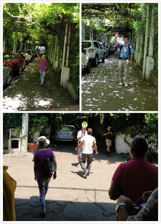 大巴到达庞贝古城所在地了。停车场下来,大家带上耳机。边走边听意砂锅吹牛。