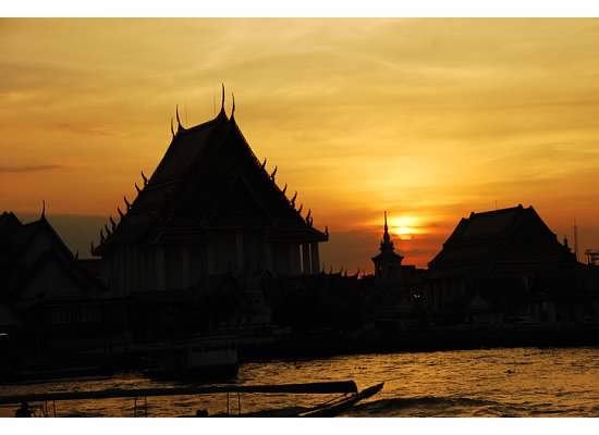 热闹过后,还是欣赏文明。 文明往往傍水而兴。湄南河畔,矗立着许多文化古迹,沿途可以看见黎明寺、大王宫、玉佛寺、大成庙等,黄昏游湄南河,可以成为理解和体会曼谷的一种方式。船上一道道的泰国美味佳肴,船舷甲板上泰国歌女竟然唱着邓丽君的歌曲“甜蜜蜜”,游轮带着我们领略一代代相传的流淌的文明,人类的文明和浪漫,相辅相成,在曼谷这里,在湄南河上,成了天作之美。
