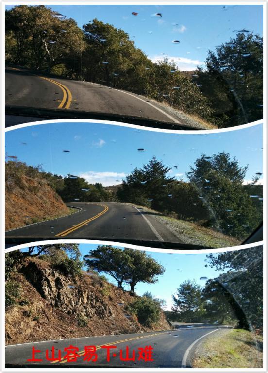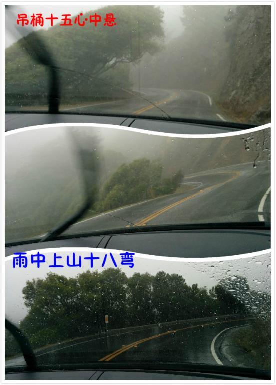 到了缪尔山脚下,雨下得很大。山路盘旋弯道很急,旁边没有栏杆。看得心惊肉跳。