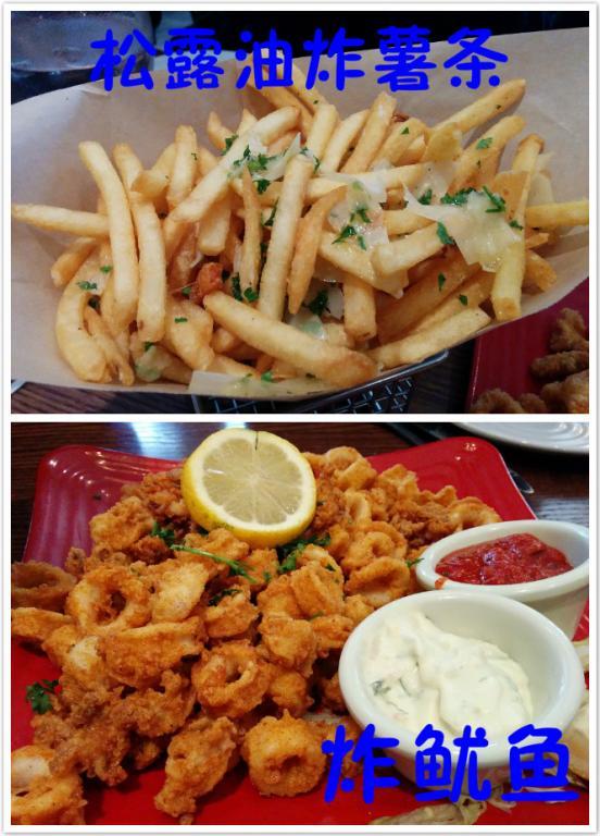 前菜点了松露油炸薯条(炸薯条真的感觉香味不错)和炸鱿鱼: