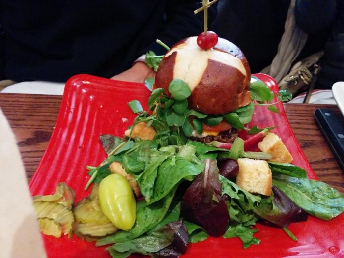 阿立点的传统牛肉汉堡。儿子预先警告,汉堡分量很足。所以这个是和阿立嫂分享的: