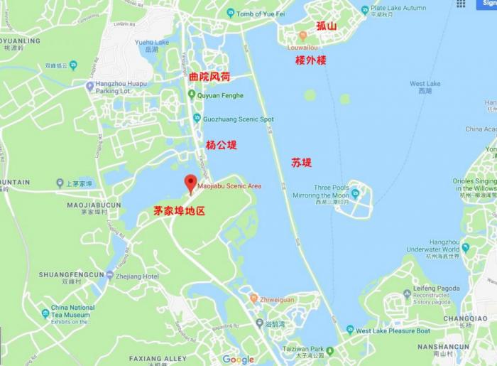 东临杨公堤,南为丁家山、五老峰,西至茅家埠村,北为南京军区杭州疗养院,包括茅家埠、翁家桥以及大小麦岭一带。2003年整治修缮。该景点突出湖埠、香道及水滨民居的景观特色,着重体现茶文化、佛教文化及民俗文化,以再现西湖地区原生民居聚落及传统香市的景观风貌。