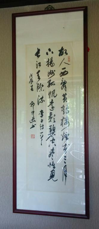 抬头一看,匾额上写着《五峰草堂》。郭仲选的书法。