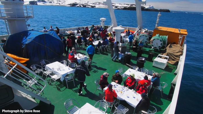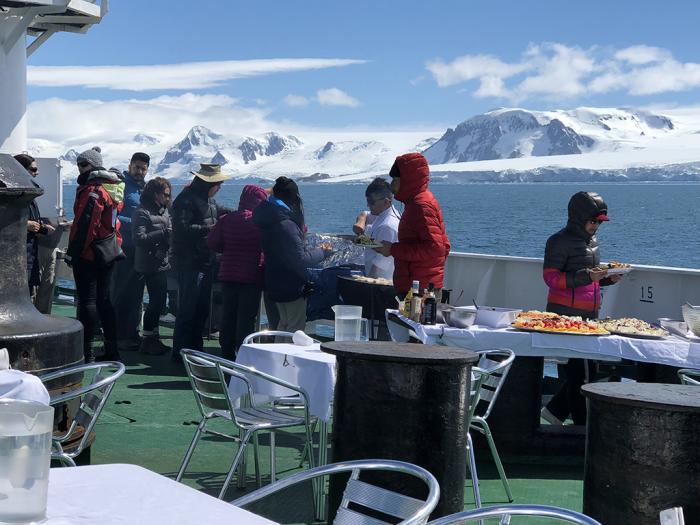船上的工作人员一脸无辜的对我们说,从来没体会到在南极露天吃烧烤吧?挺好的,试试吧。
