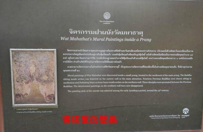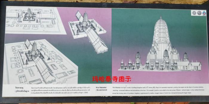 玛哈泰寺(Wat Mahathat)位于泰国最古老的都城阿瑜陀耶古城的中央,是该城的中心。佛寺四面有沟渠环绕,从印拉第王开始建造,直到1345年完成于李泰王时期。属于皇室宗庙。寺中原有209 座塔,10处僧院,但大部份都仅剩地基而已。寺内有中央塔台,四周是有四面佛龛的小佛塔和庙堂样式的佛塔。中央佛塔使用红土建成,再涂灰泥粉饰。莲花花蕾状顶端佛塔被称为素可泰式,不同于其他国家的佛塔。