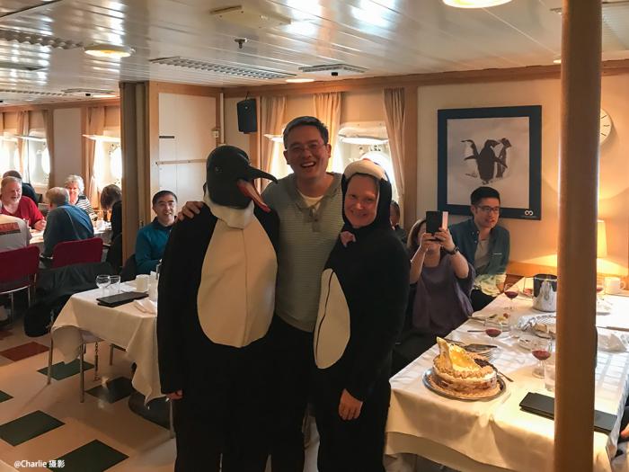 也时不时为乘客制作生日蛋糕,还装扮成企鹅为乘客庆祝生日。热情可嘉,但是蛋糕实在是太难吃啦!