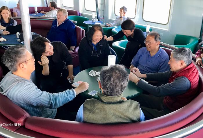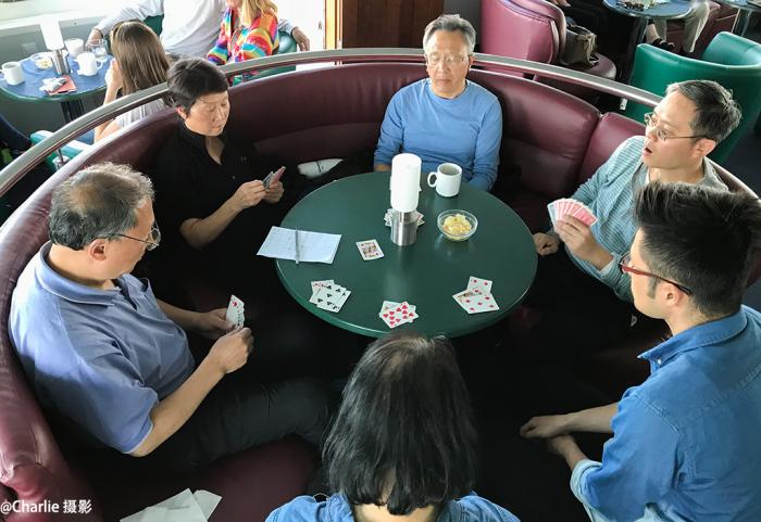 实在无聊,就到6层咖啡厅打牌消磨时间。也对得起会长陛下不怕行李超重而带来的两幅扑克。