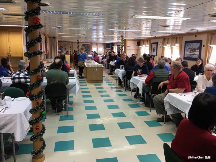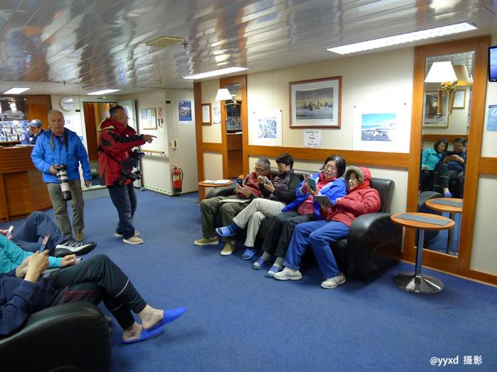 我们这次航程实际游客只有89人。船员和工作人员一共63人。船员和乘客比例很高。