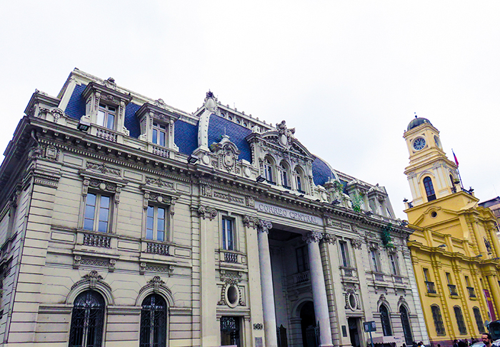 武器广场北侧的中央邮局(Central Post Office)。在殖民地时代它是总督官邸,1810年智利独立后又成为总统府,后来几次改建,终成为中央邮政大楼。