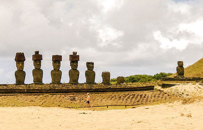 这是岛上最大的石像群. 15个摩艾背向大海。
