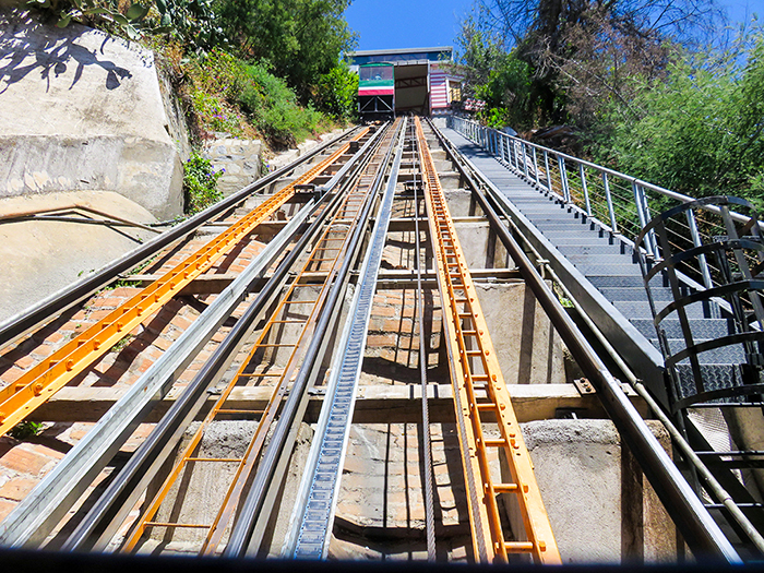 瓦尔帕莱索实际是个海边山城。所有的房子都叠叠重重依山而立。街道坡度很大。
