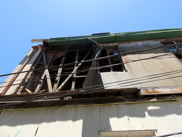 导游特地指给我们看这栋破房子。这是典型的智利房屋结构,木质,墙面很薄。