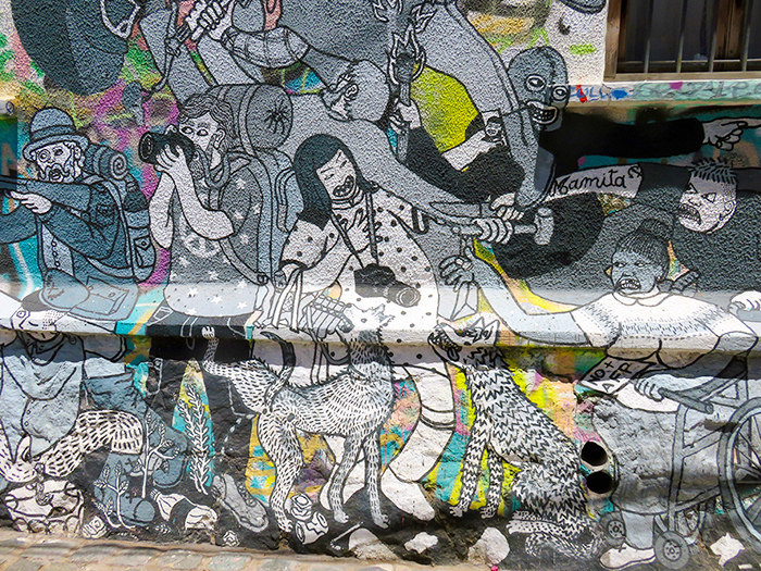 涂鸦壁画给这座城市增加了色彩和神秘。走在这五颜六色的街道上,令人浮想联翩。