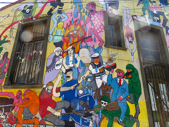瓦尔帕莱索的墙面涂鸦也是闻名于世。几乎所有的房屋都有色彩斑斓的涂鸦壁画。这些涂鸦有的叙述智利的历史,有的诉说传奇故事,有的描绘古老传统,有的展现当代奇闻。