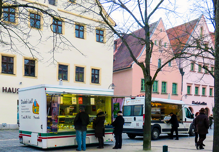 正好赶上每周两次的农贸市场。农民都开着很专业的售货车来卖农副产品。