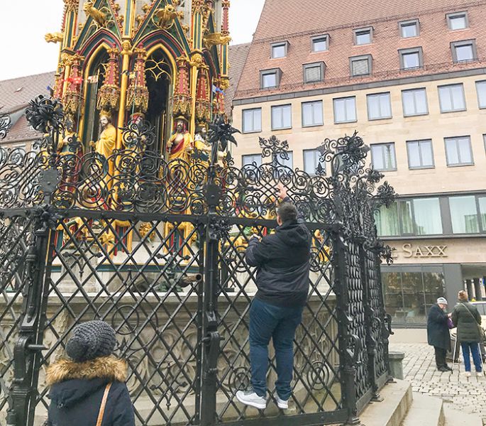 位于集市广场的美泉是一个14世纪的喷泉。上面装饰有40个雕像,代表神圣罗马帝国的世界观。