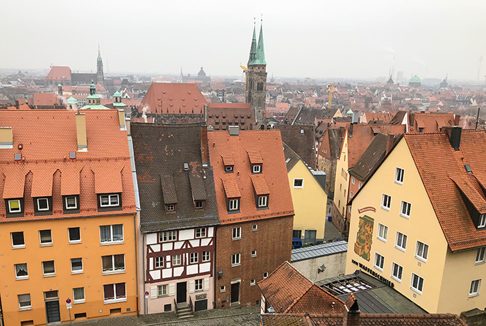 由于纽伦堡是希特勒的大本营,在二战中遭到盟军毁灭性的轰炸,只有10%的建筑幸存。纽伦堡人在战后重建中,将古老的城市中心恢复的原汁原味。