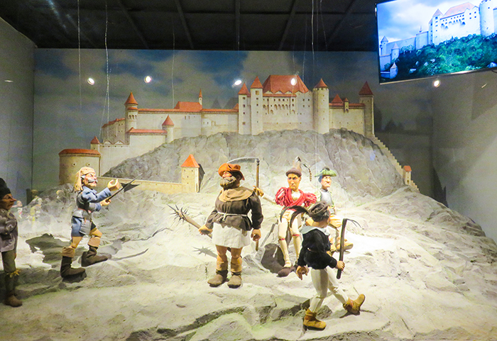 古堡里还有一个木偶博物馆。橱窗里展示木偶剧的模型。