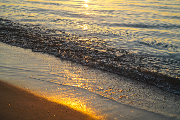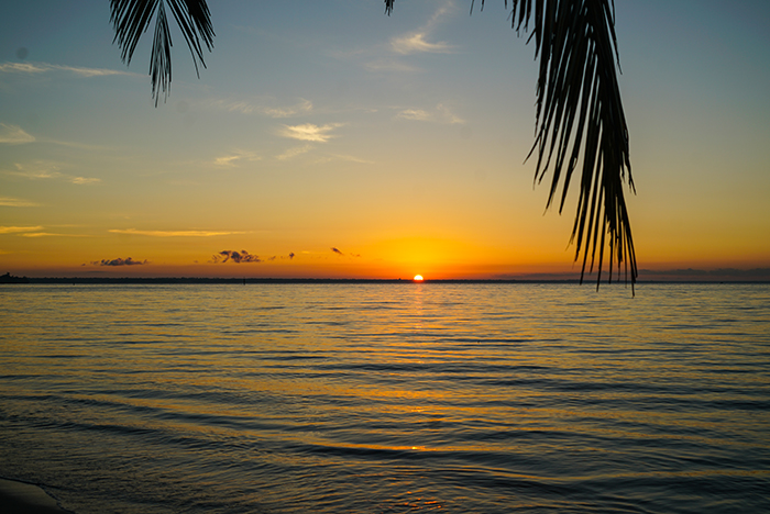 好容易熬过了黑夜,看到房后海滩上的霞光。