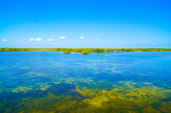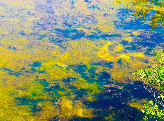 湖水清澈透明,澄澈见底,可以看见水中的鱼儿,鳄鱼,和螃蟹。