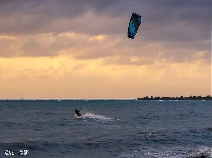 远远地就看见海面上一个孤零零的风筝冲浪人。