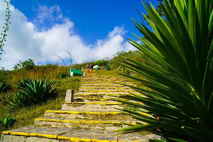 车子开到一处观景台,我们爬上几十个台阶,来到高处。