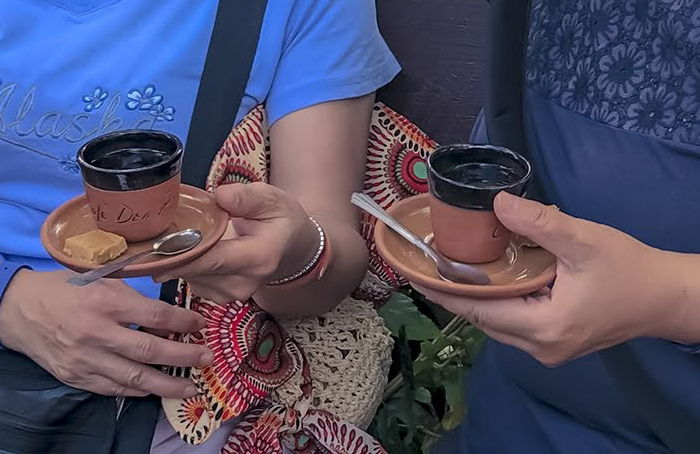 将咖啡放在铁锅里煮,过滤后,就是香喷喷的咖啡了。