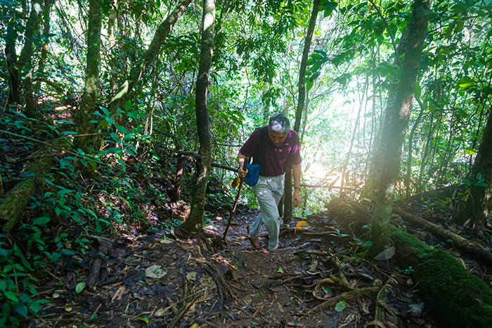 导游说王棕的叶子和根是一种治发烧的良药。王棕受法律保护。砍伐王棕是犯法的。