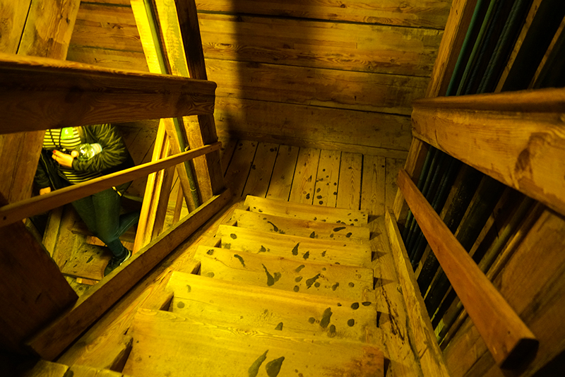 我们的盐矿之旅,是从这狭窄的木楼梯开始的。