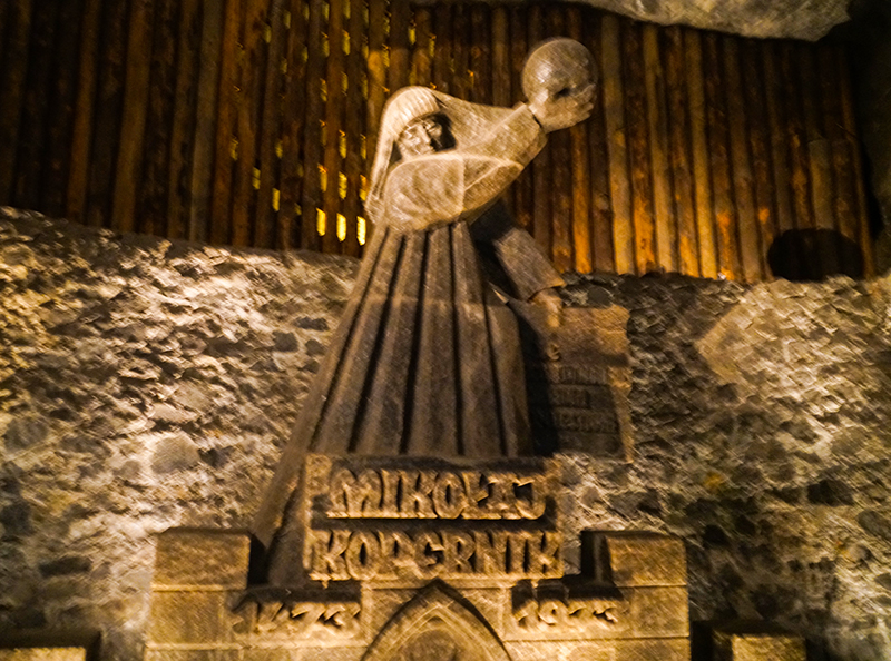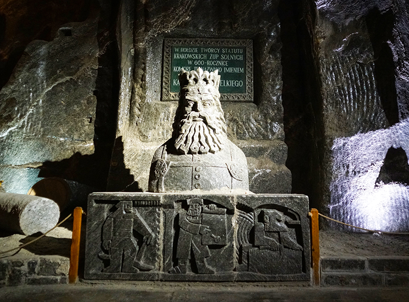 盐矿里有很多用盐岩雕出的塑像。这是波兰国王卡西米日大帝的塑像。