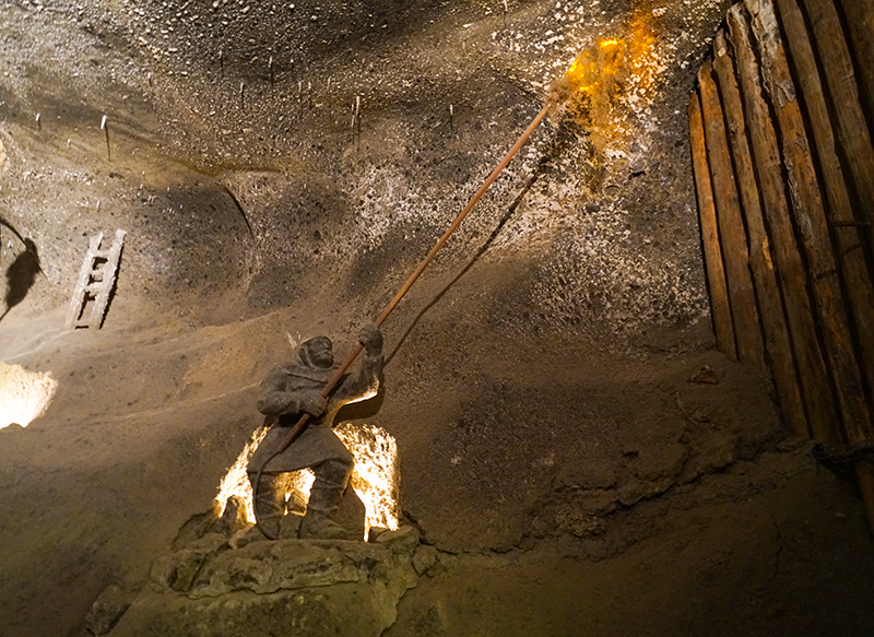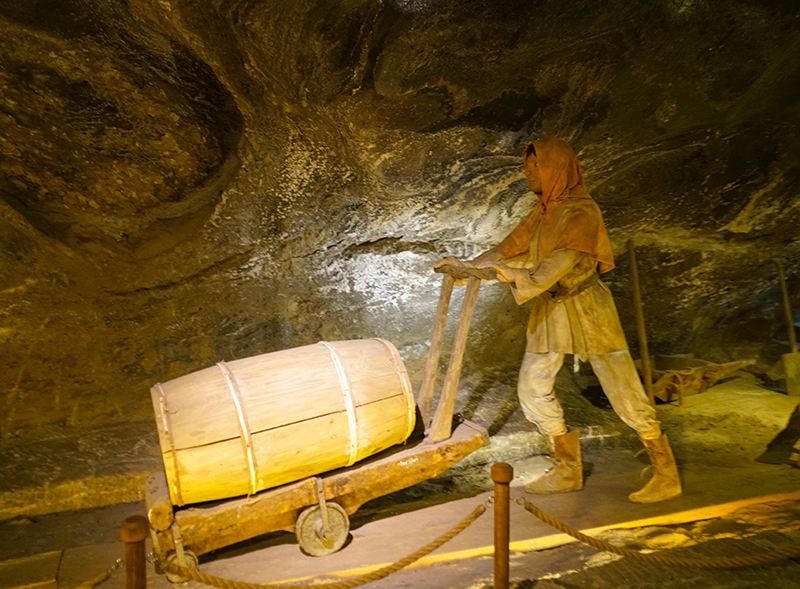 盐矿博物馆里有很多雕塑,讲述盐矿的历史。