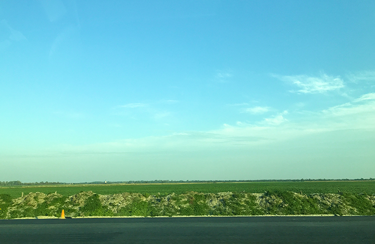 公路两边是望不到边的绿色田园,令人心旷神怡。