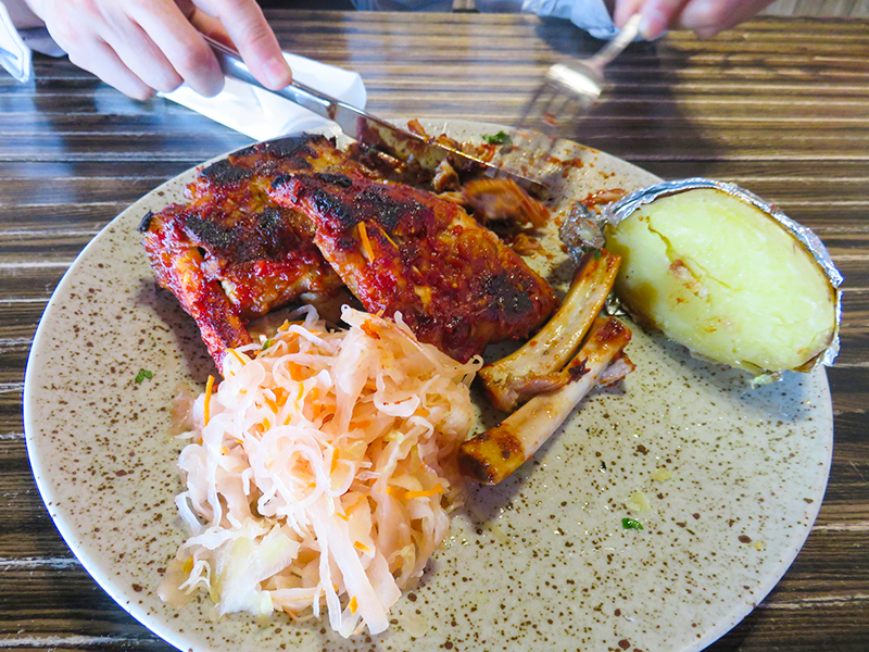 午饭时分,司机将我们带到了一处著名冬季运动景点,推荐了一家餐馆。我们点了烤排骨。