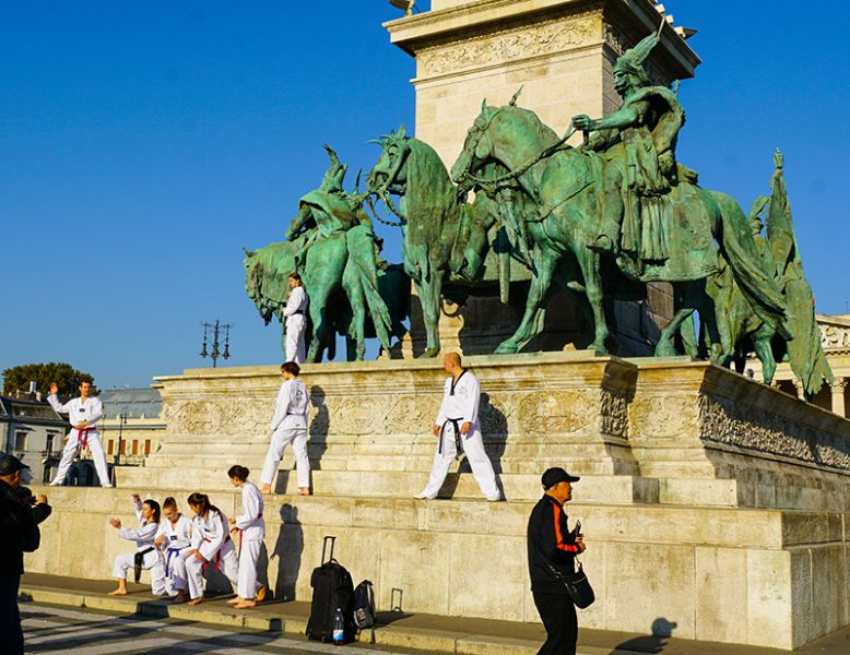 纪念碑下,也有跆拳道发烧友在摆姿势照相。