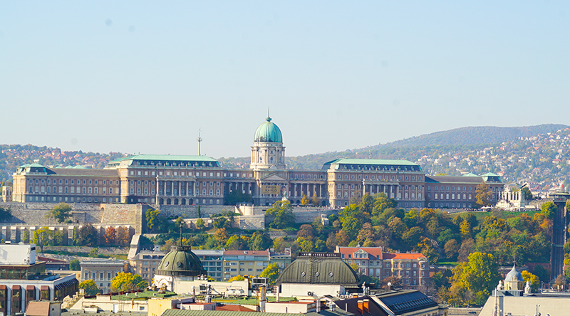 城堡山上的布达城堡。如不站在教堂钟楼上,还真不容易照到全景。