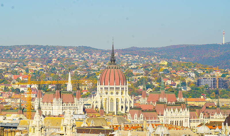 近处可见河这边和布达城堡隔河相望的国会大厦。