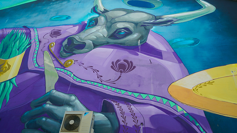 大街小巷里有很多大型壁画。导游说,政府资助艺术家,举办艺术节。壁画的颜料由颜料商免费提供。壁画受到民众喜爱的,就保留下来。