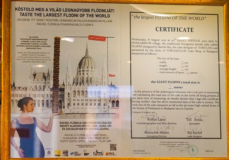 没想到这个点心铺的主人是布达佩斯的名人。因为她继承发展了犹太人制作蛋糕的方法,制作出来flódni多层蛋糕。这是世界上最高的蛋糕,有96米高,可以和国会大厦的高度相媲美。