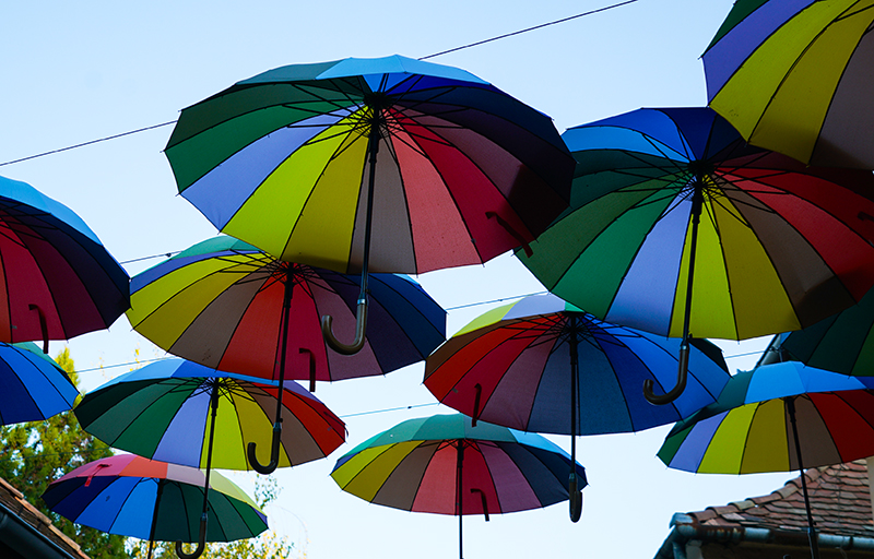 望着这悬挂的花花绿绿的雨伞,不知为什么想起了戴望舒的《雨巷》- 撑着油纸伞,独自彷徨在悠长,悠长又寂寥的雨巷。。。