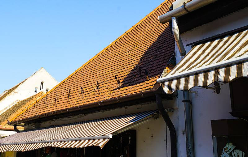 导游指着屋顶上的铁钉给我们出了一道考题,你们知道那是做什么的吗?