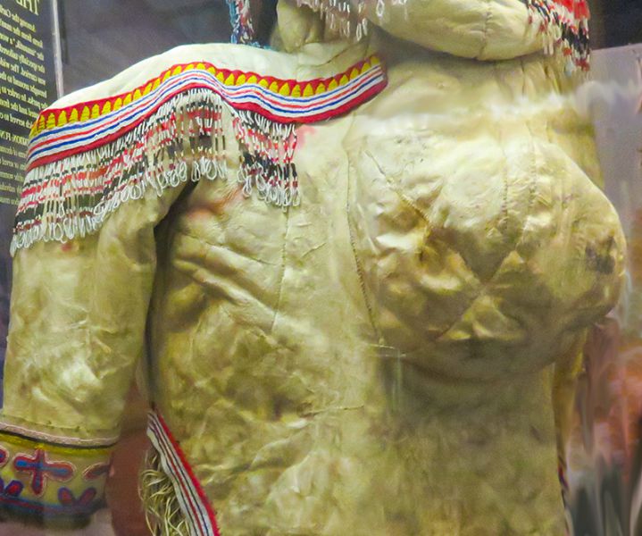 这真是一件神奇的妈妈大衣。据说因纽特妇女都会制作这样的大衣。因纽特人真是很聪明啊!